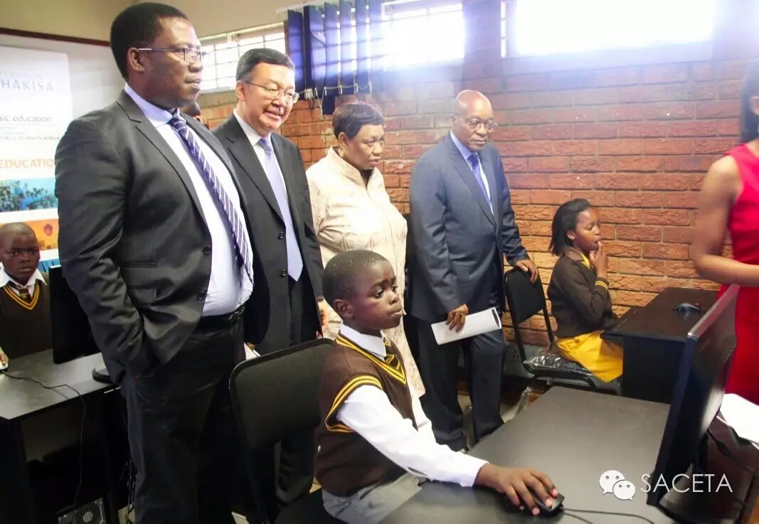 11月7日,南非總統(tǒng)雅各布祖馬,基礎(chǔ)教育部長莫采卡,豪登省主管教育的副省長勒蘇斐,中國駐南非大使館田學(xué)軍協(xié)同及該校師生100多人一起參加為南非當(dāng)?shù)貙W(xué)校捐贈電腦和體育器材活動。