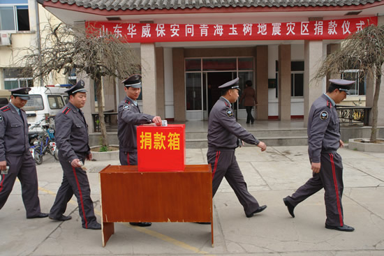 4月14日7時49分,青海省玉樹藏族自治州玉樹縣發(fā)生7.1級地震,災(zāi)情牽動著山東華威保安公司全體員工的心。公司發(fā)揚(yáng)“一方有難、八方支援”的優(yōu)良傳統(tǒng),號召全體員工向?yàn)?zāi)區(qū)伸出援助之手, 4月19日上午,公司舉行捐助儀式,廣大員工踴躍向青海玉樹地震災(zāi)區(qū)捐款,奉獻(xiàn)愛心,短短十幾分鐘募捐善款37105元,遠(yuǎn)在上海、青島、日照分公司的保安員工也積極響應(yīng)公司號召,踴躍捐款,表達(dá)了對玉樹災(zāi)區(qū)人民的深情厚誼,以實(shí)際行動支援災(zāi)區(qū)抗震救災(zāi),幫助受災(zāi)群眾渡過難關(guān)、重建家園。
