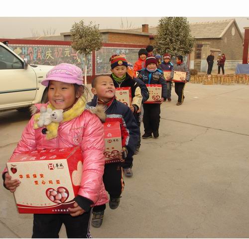 “愛心雞蛋”工程是在集團公司首席經(jīng)濟顧問陳湛勻教授及集團董事長、總裁荀金慶倡導(dǎo)并發(fā)起的,旨在讓孩子每天吃上一個雞蛋,倡導(dǎo)健康的生活理念,讓全社會都來關(guān)心孩子的健康成長。愛心雞蛋工程將定期走進校園,不僅為孩子們送上營養(yǎng)的雞蛋,而且能夠從小培養(yǎng)他們的愛心,讓他們有能力將愛心傳遞、擴展、傳播,讓這枚小小的雞蛋孵化出愛的生命力,“愛心雞蛋”就能由小雞蛋凝結(jié)成大金蛋。