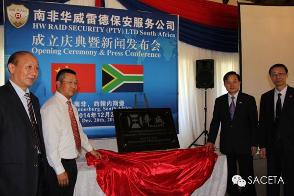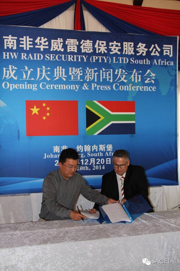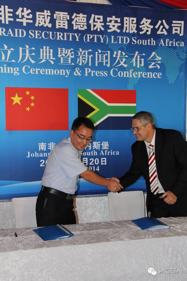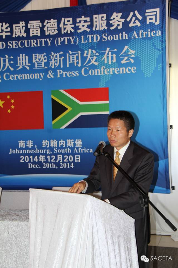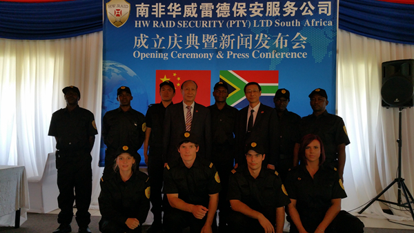 20日上午,華威雷德公司在約翰內(nèi)斯堡Birchwood 飯店舉行了成立慶典暨新聞發(fā)布會(huì),中國(guó)駐南非大使館經(jīng)濟(jì)商務(wù)參贊榮延松、警務(wù)參贊王志鋼、中國(guó)駐南非約翰內(nèi)斯堡總領(lǐng)館副總領(lǐng)事楊培棟、南非-中國(guó)經(jīng)貿(mào)協(xié)會(huì)秘書(shū)長(zhǎng)衛(wèi)中以及中資企業(yè)等各界人士70多位嘉賓應(yīng)邀參加了慶典活動(dòng)?;顒?dòng)由華威保安集團(tuán)高級(jí)顧問(wèn)蔣曉明主持,山東華威保安集團(tuán)董事長(zhǎng)、華威雷德公司董事長(zhǎng)荀金慶致詞,對(duì)各位嘉賓的到來(lái)表示熱烈的歡迎和衷心的感謝。華威雷德公司總經(jīng)理弗朗斯介紹了公司概況及今后開(kāi)展經(jīng)營(yíng)業(yè)務(wù)的計(jì)劃。經(jīng)濟(jì)商務(wù)參贊榮延松、南非經(jīng)貿(mào)協(xié)會(huì)秘書(shū)長(zhǎng)衛(wèi)中等領(lǐng)導(dǎo)分別致詞,對(duì)華威雷德公司的成立表示熱烈的祝賀。與會(huì)領(lǐng)導(dǎo)為華威雷德公司及山東華威集團(tuán)駐南非代表處揭牌。隨后,中國(guó)五礦、中國(guó)證大、山東新光集團(tuán)分別與華威雷德公司簽訂了合作意向書(shū)。近年來(lái),華威保安集團(tuán)一直致力于開(kāi)拓國(guó)際保安市場(chǎng),探討中國(guó)保安公司如何走出國(guó)門(mén)為中國(guó)海外企業(yè)及公民提供安全保護(hù)的途徑。華威雷德保安公司的成立,標(biāo)志著中國(guó)保安企業(yè)為實(shí)現(xiàn)上述目標(biāo)邁出了可喜的第一步。