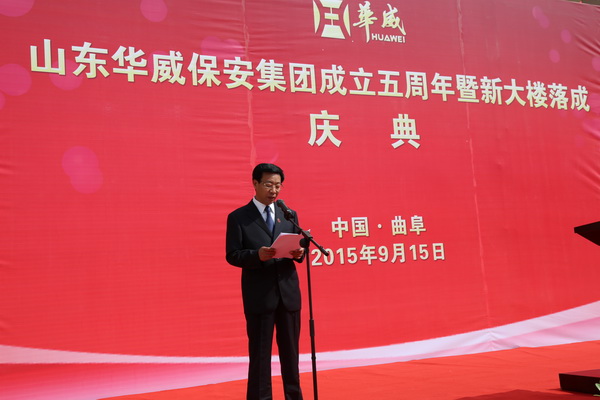 曲阜市公安局副局長(zhǎng)司令國(guó)講話,對(duì)華威保安集團(tuán)成立五周年表示熱烈的祝賀,他說(shuō):五年前,華威保安集團(tuán)成立,在董事會(huì)的領(lǐng)導(dǎo)下,得到了快速發(fā)展,取得了驕人的業(yè)績(jī),成為中國(guó)保安行業(yè)中的一匹黑馬,在全國(guó)保安行業(yè)中享有較高的知名度和影響力。這次新大樓的落成,見(jiàn)證了華威保安五年快速發(fā)展取得的成就和實(shí)力,充分體現(xiàn)了他們勇于創(chuàng)新、敢于擔(dān)當(dāng)?shù)纳鐣?huì)責(zé)任意識(shí)。華威保安是從曲阜走出的一家企業(yè),是曲阜的驕傲,市公安局黨委感到非常欣慰,在這里向他們表示祝賀,為他們點(diǎn)贊!