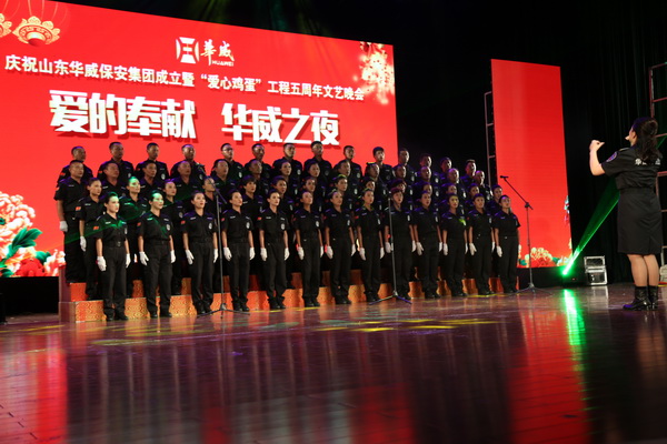 9月15日晚8時(shí),在威武雄壯的華威之歌《忠誠(chéng)》及歡騰的鼓樂(lè)《盛世中國(guó)》聲中,“慶祝山東華威保安集團(tuán)成立暨愛(ài)心雞蛋工程五周年文藝晚會(huì)”在曲阜孔子文化會(huì)展中心演出大廳拉開(kāi)序幕。繼當(dāng)天慶典儀式后,文藝晚會(huì)將華威集團(tuán)成立五周年系列慶?;顒?dòng)再次推向了高潮。曲阜市關(guān)工委領(lǐng)導(dǎo)郭慶海、劉燦鎮(zhèn)等有關(guān)領(lǐng)導(dǎo)與華威集團(tuán)的客戶代表、保安同行及公司員工代表和家屬1400余人參加了晚會(huì)。本次晚會(huì)由山東華威保安集團(tuán)和曲阜市關(guān)工委共同主辦,特邀山東廣播電視臺(tái)公共頻道主播孟慧、小新主持,晚會(huì)得到了中央民族歌舞團(tuán)得友情贊助,她們與華威員工共同為大家演繹了“奉獻(xiàn)愛(ài)心,華威之夜”,山東電視臺(tái)、山東網(wǎng)絡(luò)廣播電視臺(tái)《風(fēng)云魯商》欄目、齊魯網(wǎng)魯商頻道、齊魯網(wǎng)濟(jì)寧頻道進(jìn)行了全程錄播。