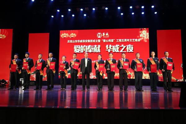晚會(huì)中,還穿插了對(duì)華威保安集團(tuán)成立5年來(lái)建功立業(yè)先進(jìn)人物孔凡玉、王一鳴等12名同志的表彰儀式,集團(tuán)董事長(zhǎng)、總裁荀金慶上臺(tái)為獲得獲表彰的員工頒獎(jiǎng)。