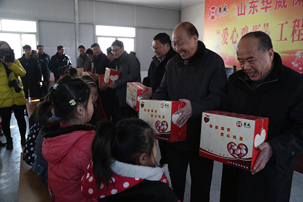 1月15日上午,華威保安集團、曲阜市關(guān)工委在小雪街道辦事處白洋樹小學(xué)舉行“愛心雞蛋工程”捐贈儀式,這標(biāo)志著華威保安2016年“愛心雞蛋工程”捐贈活動正式啟動。當(dāng)天,滿載著華威全體員工拳拳愛心的2200余斤愛心雞蛋,分別發(fā)放到小雪街道辦事處8所小學(xué)、379名小學(xué)生手中。