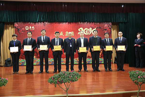 當(dāng)天的表彰大會中,共頒發(fā)了集團(tuán)2015年度先進(jìn)集體、先進(jìn)管理者、服務(wù)明星、基層企業(yè)文化先進(jìn)個人、先進(jìn)黨支部、團(tuán)支部、優(yōu)秀黨員、優(yōu)秀團(tuán)員等十多個獎項,荀董事長、常務(wù)副總裁楊中河、黨總支副書記李曉虎,集團(tuán)副總裁顏承國、孫勇、姚彥偉,工會主席孫凡華分別為獲獎集體和個人頒獎,并合影留念。