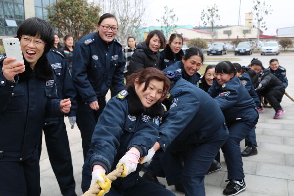 3月8日上午,集團(tuán)總部辦公大樓前傳來一陣陣吶喊助威聲,這是山東華威保安集團(tuán)工會(huì)為慶祝第105個(gè)“三八”國際婦女節(jié)的到來而精心組織的一場(chǎng)女員工拔河比賽。集團(tuán)常務(wù)副總裁楊中河、黨總支副書記李曉虎、副總裁顏承國、工會(huì)主席孫凡華,總裁助理仙文、孔令東,董事會(huì)秘書趙冬梅、女工委主任邱玉華出席了活動(dòng),來至集團(tuán)行管代表隊(duì),犬業(yè)公司、駕校、安防公司、報(bào)警公司組成的經(jīng)營代表隊(duì),曲阜分公司的1至4隊(duì),共計(jì)6支女子拔河隊(duì)伍、60名運(yùn)動(dòng)員參加了比賽。