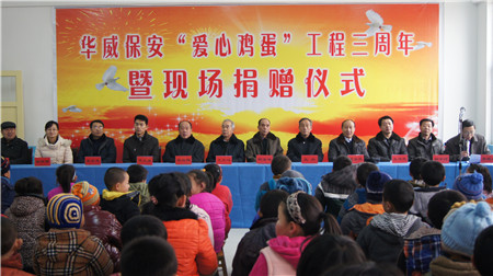 2010年,集團(tuán)成立了華威愛心基金,發(fā)動(dòng)員工捐款,開展向農(nóng)村小學(xué)生兒童捐獻(xiàn)“愛心雞蛋”活動(dòng)。至2016年,共向曲阜58所小學(xué),捐贈(zèng)愛心雞蛋16100余斤。自2013年起,每年堅(jiān)持資助曲阜市防山鎮(zhèn)的10名困難小學(xué)生,捐款捐物,并組織夏令營(yíng)活動(dòng),讓受助困難兒童感受社會(huì)溫暖,健康成長(zhǎng)回報(bào)社會(huì)。