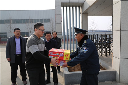 公司領(lǐng)導(dǎo)先后深入到保安一線,細致了解節(jié)日期間安全保衛(wèi)情況,看望正在辛勤工作的一線保安員,與他們一一握手,詢問他們的工作、生活情況,并致以節(jié)日問候,對員工的辛勤工作表示感謝。楊副總裁說,新春佳節(jié)正是萬家團圓的日子,你們依然堅守在工作崗位上,我代表公司向你們表示最衷心的感謝和最誠摯的問候,祝愿大家工作順利、闔家幸福、節(jié)日快樂。也希望大家堅守工作崗位,把好節(jié)日安全防線。