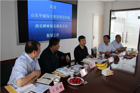 5月25日,集團(tuán)常務(wù)副總裁楊中河、副總裁顏承國(guó)一行到訪(fǎng)西安市保安協(xié)會(huì)及西安市碑林區(qū)保安服務(wù)公司進(jìn)行考察調(diào)研。西安保安協(xié)會(huì)副會(huì)長(zhǎng)朱小波、秘書(shū)長(zhǎng)程保衛(wèi),碑林區(qū)保安服務(wù)公司總經(jīng)理王海林等與華威來(lái)賓進(jìn)行了座談。