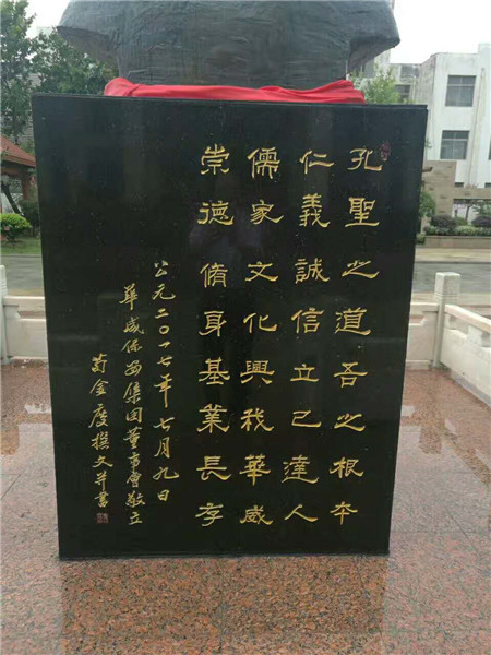在儀式上,董事長(zhǎng)、總裁荀金慶,常務(wù)副總裁楊中河共同為先師孔子像揭幕,大家聆聽(tīng)了荀董事長(zhǎng)為孔子像題寫(xiě)的致辭:孔聖之道,吾之根本;仁義誠(chéng)信,立已達(dá)人;儒家文化,興我華威;崇德修身,基業(yè)長(zhǎng)存。華威員工代表向孔子像行鞠躬禮,表達(dá)了對(duì)這位先賢圣人的無(wú)限敬仰和尊重。