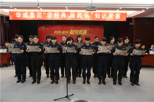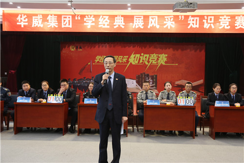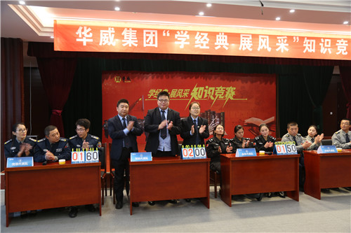值十九大召開之際,10月21日上午,山東華威保安集團(tuán)“學(xué)經(jīng)典、展風(fēng)采”知識競賽在集團(tuán)總部會議大廳隆重舉行。通過層層選拔,來自華威集團(tuán)旗下30個(gè)分公司的隊(duì)員,共12支代表隊(duì),36名選手參加了比賽。特約點(diǎn)評嘉賓市教體局房立禎老師,荀金慶、李曉虎、顏承國、姚彥偉等集團(tuán)領(lǐng)導(dǎo)參加活動。黨總支副書記李曉虎致辭,董事長、總裁荀金慶賽后總結(jié)比賽并對下一步華威企業(yè)文化的建設(shè)提出了意見。