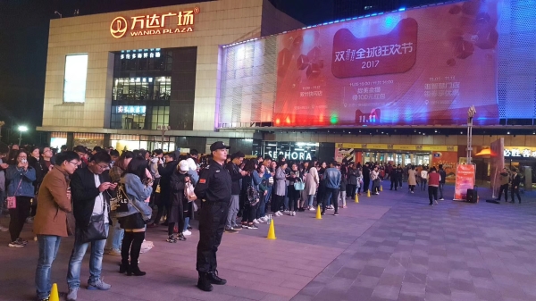 雙11期間天貓科技公司舉辦的“捉黃金貓,領(lǐng)現(xiàn)金紅包”活動(dòng)在建鄴萬達(dá)廣場(chǎng)如期舉辦,活動(dòng)共吸引了5000余人參加。此次活動(dòng)全程由江蘇華威保安公司派出的特保保駕護(hù)航。