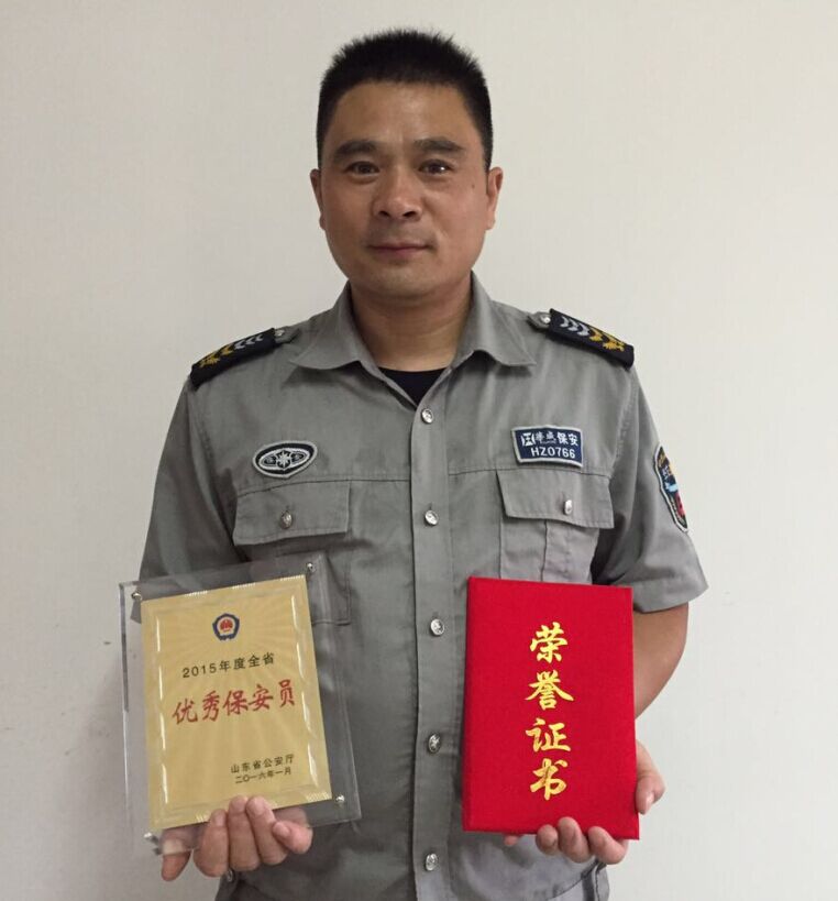 在山東省評(píng)選表彰2015年度全省優(yōu)秀保安公司和優(yōu)秀保安員中,我華威保安集團(tuán)菏澤分公司兩位保安員李桂合和岳遠(yuǎn)強(qiáng)二人榮獲2015年度全省優(yōu)秀保安員稱號(hào)。