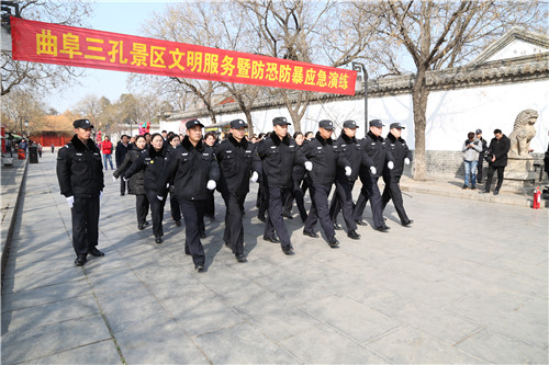 曲阜三孔景區(qū)反恐防暴應(yīng)急演練 華威保安展雄姿