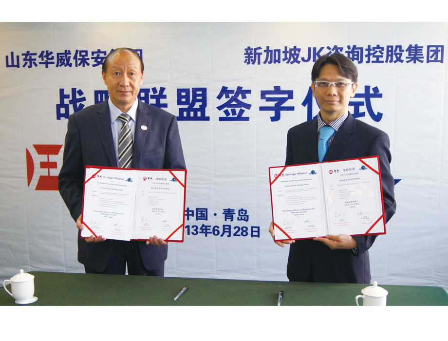 2013年6月28日,山東華威保安集團(tuán)與新加坡JK咨詢控股公司簽訂戰(zhàn)略合作協(xié)議