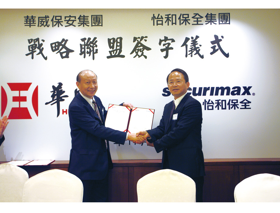 2012年11月,山東華威保安集團(tuán)與臺灣怡和保全集團(tuán)在臺灣簽訂戰(zhàn)略合作協(xié)議